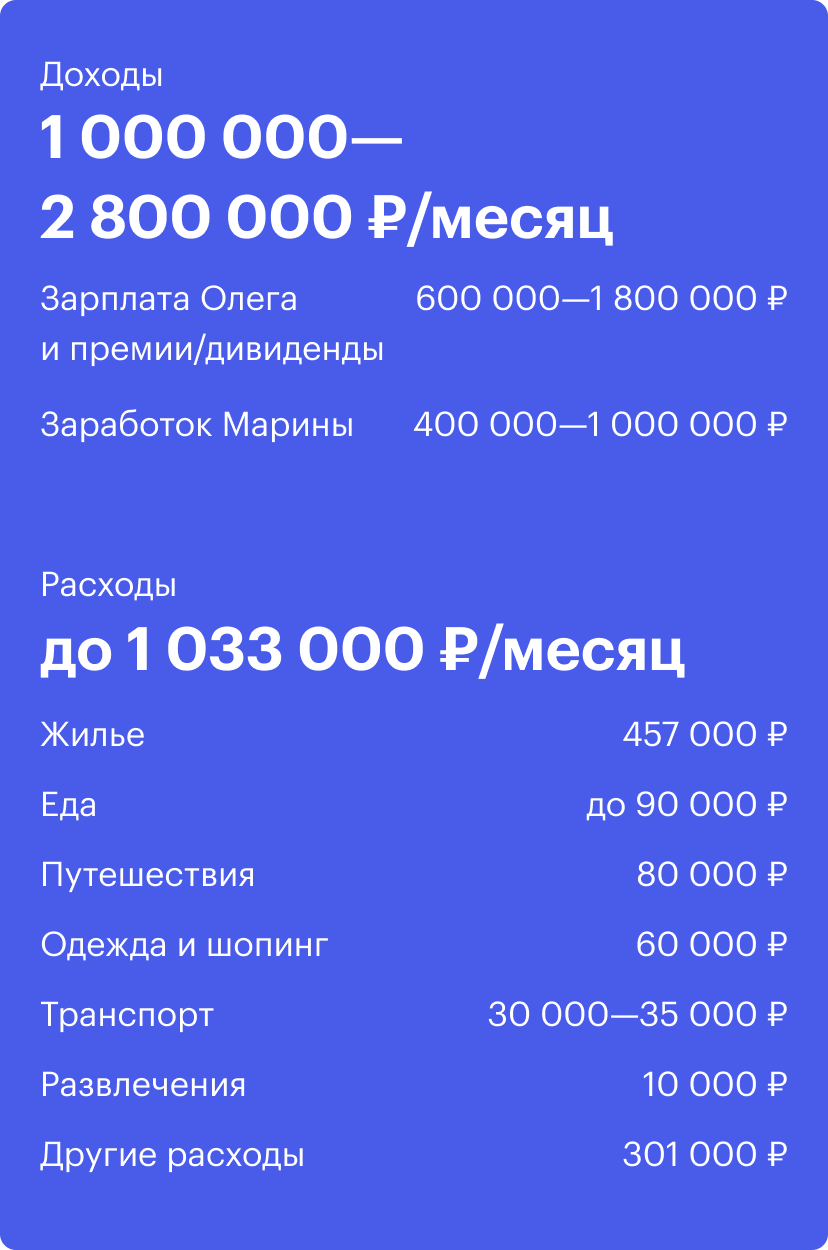 Инвестиционных и пассивных доходов в настоящее время нет, так как все инвестиционные продукты мы закрыли в 2019 году, чтобы вывести средства и купить квартиру. Раньше у меня был брокерский счет, я покупал облигации в валюте, биткоины, у меня были депозиты и накопительные счета. На вкладе под 8% у нас лежало 10 млн рублей, это приносило дополнительный доход, а также проценты на остаток и кэшбэк. Сейчас на накопительном счете около 5 млн на ремонт новой квартиры, проценты ежемесячно приносят примерно 6 тысяч. Я открыл его, чтобы откладывать накопления и немного защититься от инфляции.