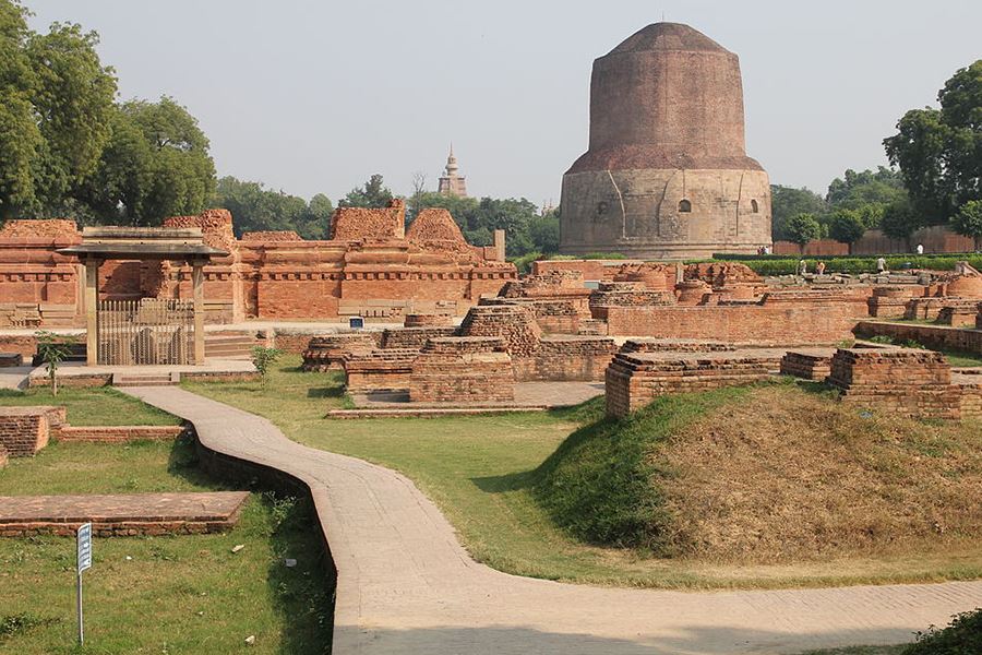 Здесь Будда осуществил «поворот Колеса учения» — прочел для первых своих последователей первую проповедь, разъяснив учение о «четырех благородных истинах». Сейчас сооружения Сарнатха – это руины прежнего величия. Цилиндрическая ступа называется Дхамек, она возведена около 500 г. н. э.