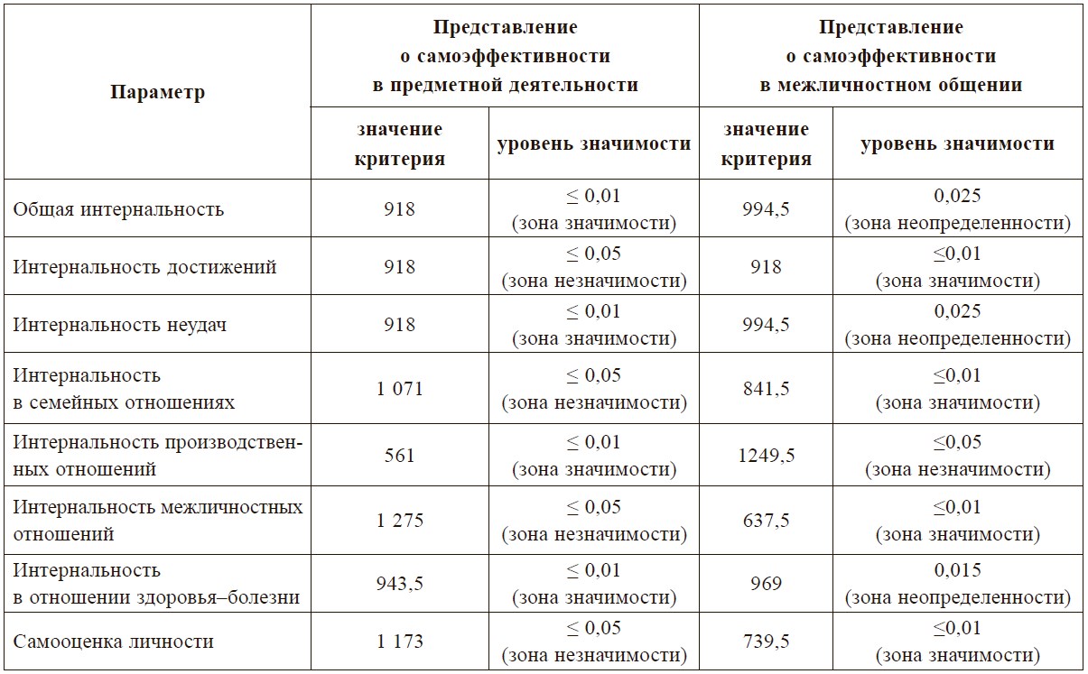 Для определения локуса контроля применялась методика «Диагностика парциальных позиций интернальности — экстернальности личности» (Е.Ф. Бажин, Е.А. Голынкина, А.М. Эткинд), которая позволяет оценить, как респондент относится к происходящим в его жизни событиям, считает ли он себя автором и основным актором собственной судьбы или считает, что он не властен над ними. Статистический анализ был проведен при помощи U-критерия Манна — Уитни.
