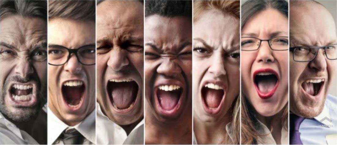 Досада, пренебрежение, недовольство, циничность, ревность, ненависть, ярость, бешенство, гнев, агрессия, брезгливость, зависть, омерзение, презрение, нетерпимость, отвращение, и т.д. |