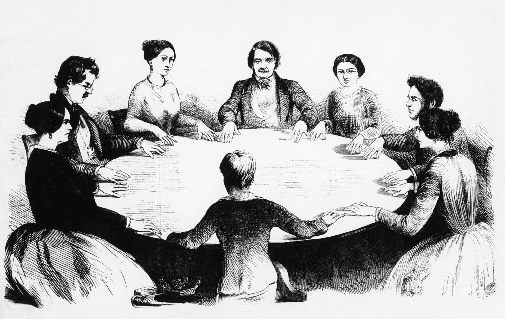 Группа людей усаживалась вокруг стала, клала на него руки и принималась ждать «прихода духа». «Дух» обычно приходил – стол начинал качаться, наклоняться либо вообще вращаться, тем самым «отвечая» на вопросы присутствующих.