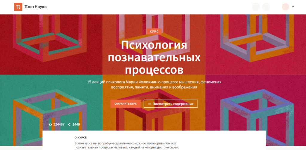 «Психология познавательных процессов» от образовательного проекта «ПостНаука»