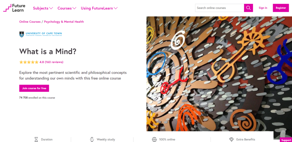 Программа: этот бесплатный онлайн-курс создан для учащихся и практиков, а также для всех, кто заинтересован в работе мозга. Здесь помогут исследовать четыре конкретных аспекта ума: субъективность, намеренность, сознание и свободу воли. По ходу обучения каждый слушатель сможет ответить на вопрос, зачем человеку разум.