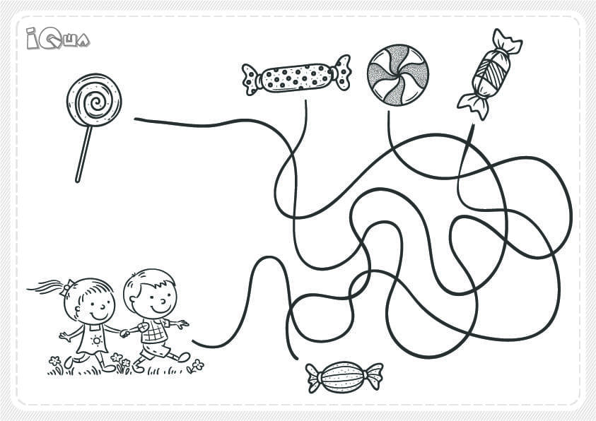 Если нужно найти несколько тропок, предложить раскрасить их разными цветами. А ещё правильный маршрут можно вылепить с помощью пластилина или смазать клеем и приклеить на него кусочки бумаги или крупы. Если лабиринт черно-бёлый, то обязательно оставьте его для самостоятельного раскрашивания.