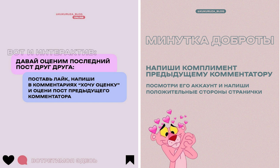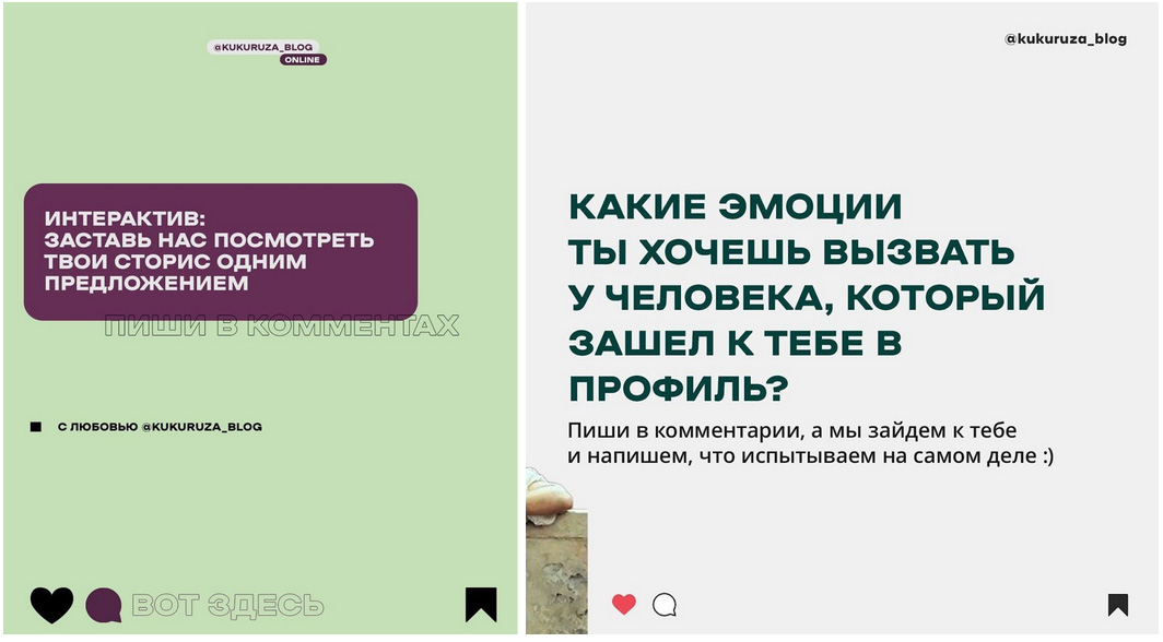 Если сложно придумать интересный интерактив, то можно просто в конце карусели задать вопрос по теме поста и пообщаться с аудиторией в комментариях.