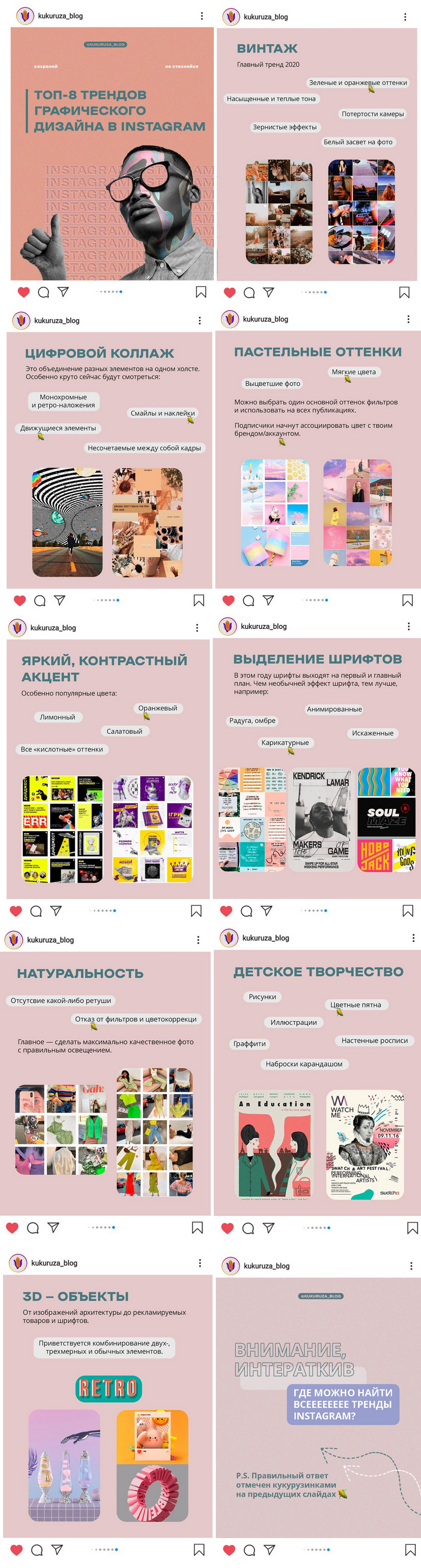 Подписчики просто перестанут обращать внимание на одни и те же призывы в конце каждой карусели — эффективность будет нулевая. Используйте разные интересные CTA