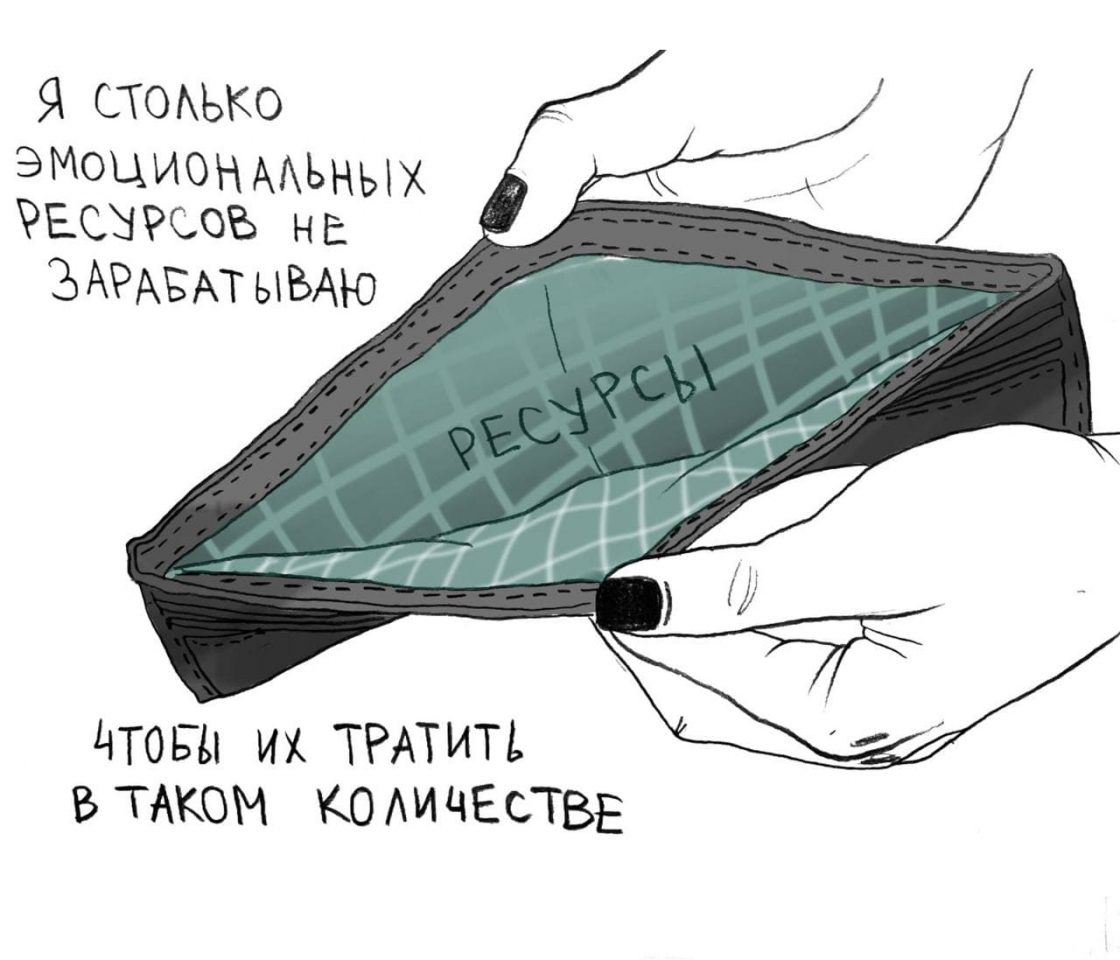 С журналом «Холод» я начала сотрудничать, ещё когда вела Твиттер. На меня вышли, предложили сделать иллюстрации. Сейчас большинство заказов приходит через инстаграм. Ко мне приходят бренды и говорят: «Можете ли сделать вы иллюстрации на определённую тему?» Мы с ними обговариваем идею, мне высылают ТЗ, а затем я уже что-то формирую у себя в голове и рисую. Я стараюсь брать заказы с важным посылом: на психологическую тему, на тему феминизма, принятия себя. Если я почувствую, что никого удовольствия от работы не получу, то я отказываюсь от предложения, даже если за это хорошо заплатят. Заказов с политической пропагандой мне не присылали пока, не могу похвастаться, но я бы от такого отказалась.