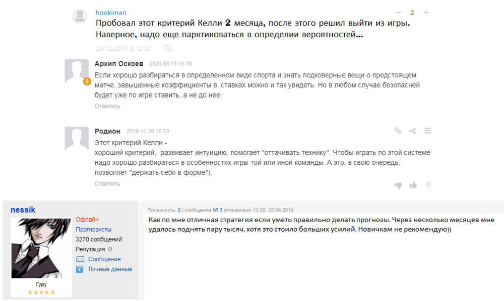 Приведем примеры реальных бетторов, их вы можете видеть на скриншотах с форумов ниже. На самом верхнем снимке отзыв человека, у которого ничего не получилось. Как он сам пишет, причина была в том, что у него слабо получалось определять вероятности, то есть делать прогнозы. А вот у последнего человека из этого списка все вышло, но далеко не сразу. Также пишут, что нужно хорошо знать особенности конкретного вида спорта.