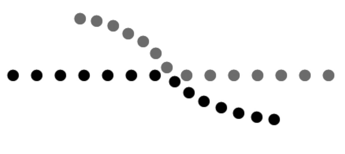 2. Принцип непрерывностиСуществует тенденция следовать в направлении, позволяющим связывать наблюдаемые элементы в непрерывную последовательность или определенную ориентацию. На рисунке мы видим не просто отдельные точки, а две пересекающиеся линии.