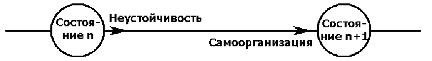 2. По завершению процесса самоорганизации эволюционизирующая система переходит в состояние (n+1). После этого n-го эволюционного цикла начинается новый (n+1)-й цикл.
