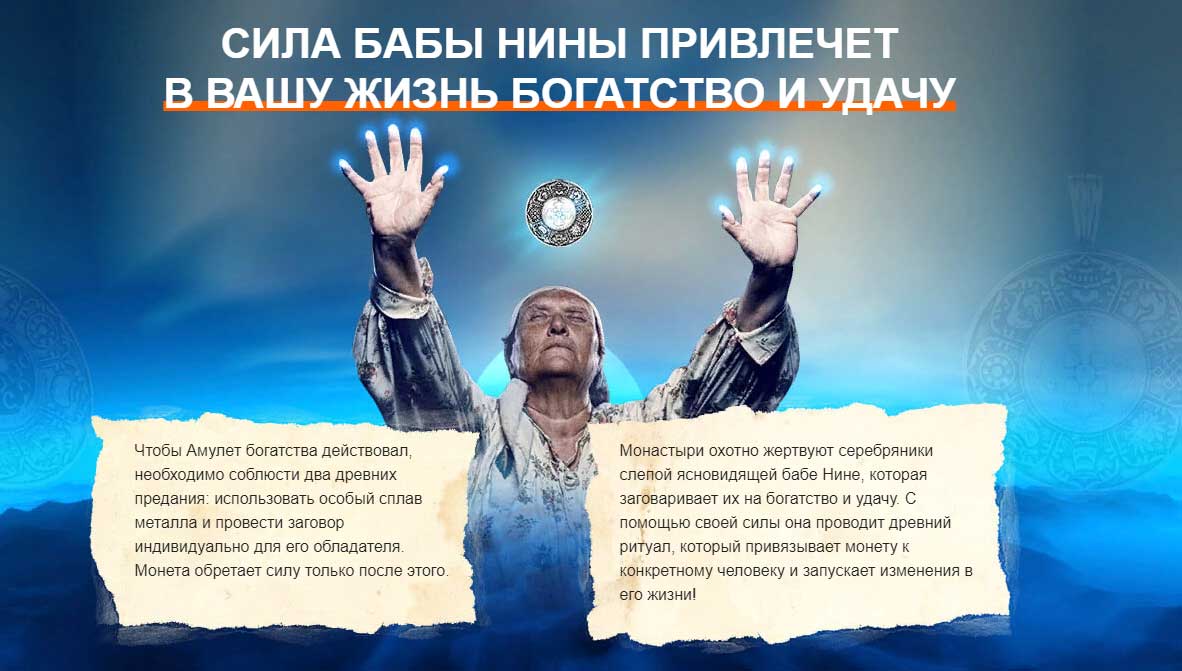 Ещё наши амулеты потому сильно действуют на привлечение удачи, потому что их нам жертвуют священники и монахи из монастырей по всей России. В силе Бабы Нины не возникает сомнений, только она может заговорить амулет на богатство и удачу правильно, так как это должно быть. Чтобы заказать амулет от Бабы Нины, оставьте заявку на сайте. Вы можете связаться с нами любым удобным для вас способом