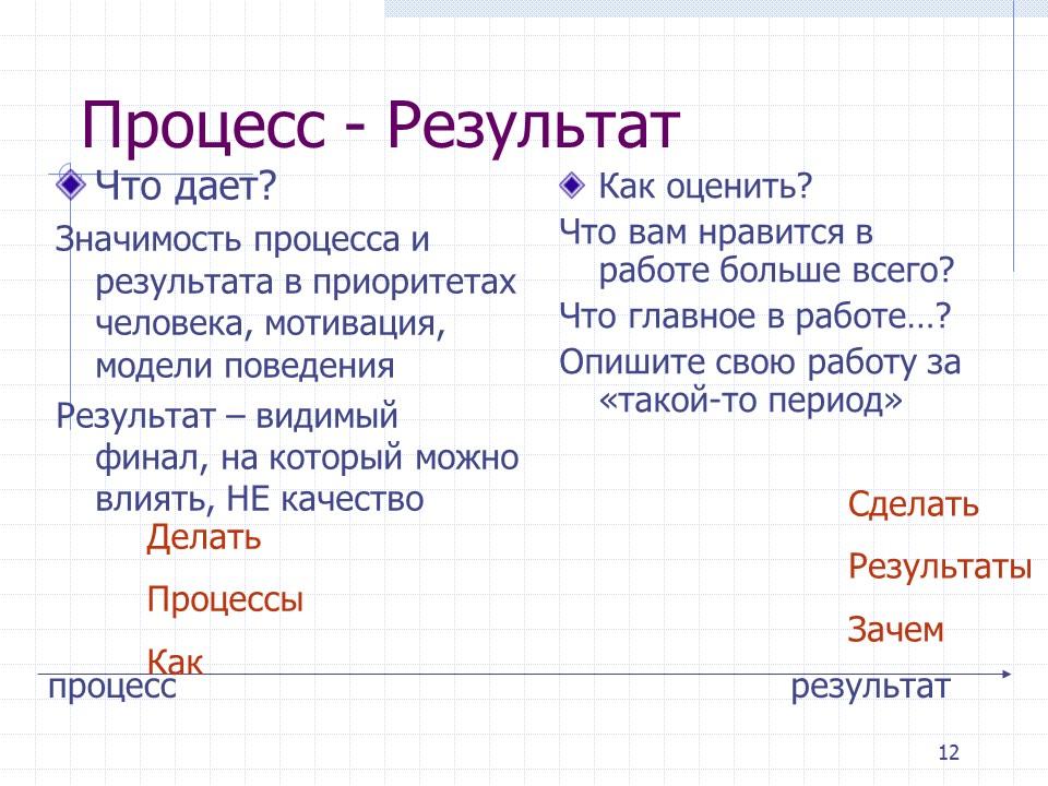 Еще одна важная метапрограмма, которую мы определяем, — это – процесс или результат.